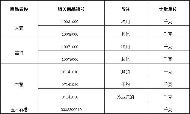 根據《中華人民共和國對外貿易法》、《中華人民共和國貨物進出口管理條例》和《貨物自動進口許可管理辦法》,現決定將大麥、高粱、木薯和玉米酒糟納入自動進口許可管理(詳見附件),自2015年9月1日起執行。
