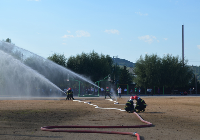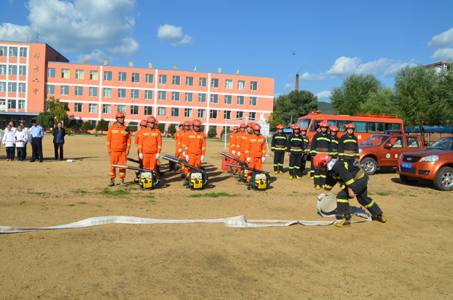 演練期間,森林消防專業(yè)隊介紹了森林消防主要設(shè)備——風(fēng)力滅火機的使用方法和基本技戰(zhàn)術(shù),撲救中緊急避險等安全常識,并進行了現(xiàn)場模擬演練;公安消防大隊普及了消防安全常識和滅火水帶連接演示,指導(dǎo)森林消防隊員進行“單人二帶”和“三人五帶”的滅火水帶連接演練,并進行了水車快速施救的實戰(zhàn)演練。