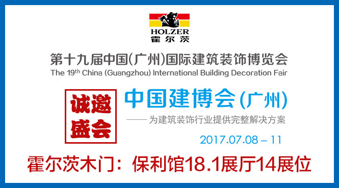 7.8-11的廣州建博會(huì)上,就在保利館18.1-14展位,希望更多經(jīng)銷商與消費(fèi)者的蒞臨,讓更多的人體驗(yàn)時(shí)尚、隔音、環(huán)保的霍爾茨T型門。