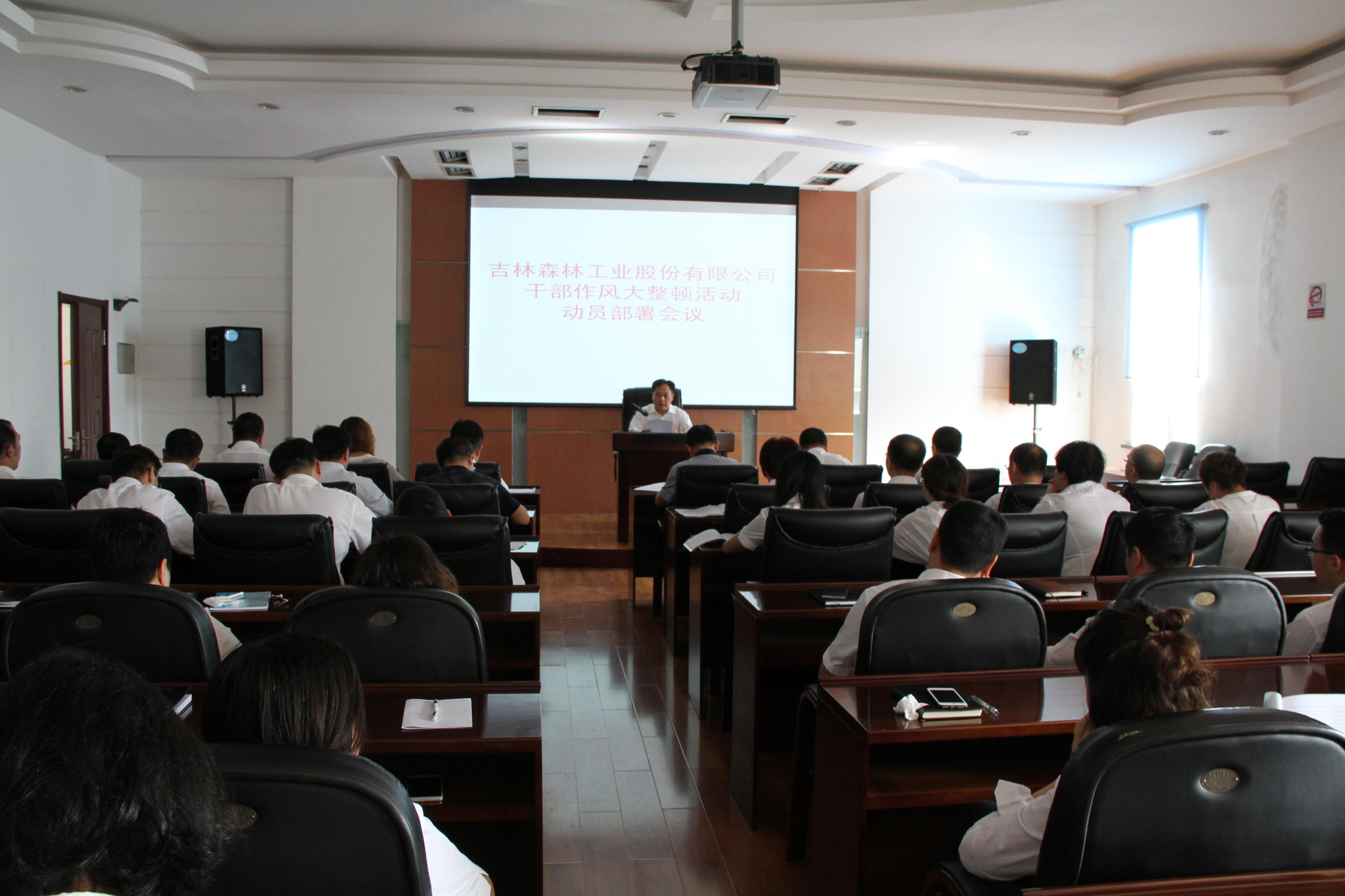 按照省委及集團黨委部署要求,8月31日,吉林森林工業股份有限公司在五樓會議室召開干部作風大整頓活動動員部署會議。會上,傳達貫徹了集團黨委書記于海軍同志8月29日講話精神,公布了股份公司干部作風大整頓活動實施方案,學習傳達了集團公司“三重一大”決策制度實施辦法,股份公司黨委書記姜長龍同志對活動進行了動員部署。股份公司領導班子成員,分子公司黨組織負責人,全體機關干部參加會議,集團紀委劉東昉同志到會指導。