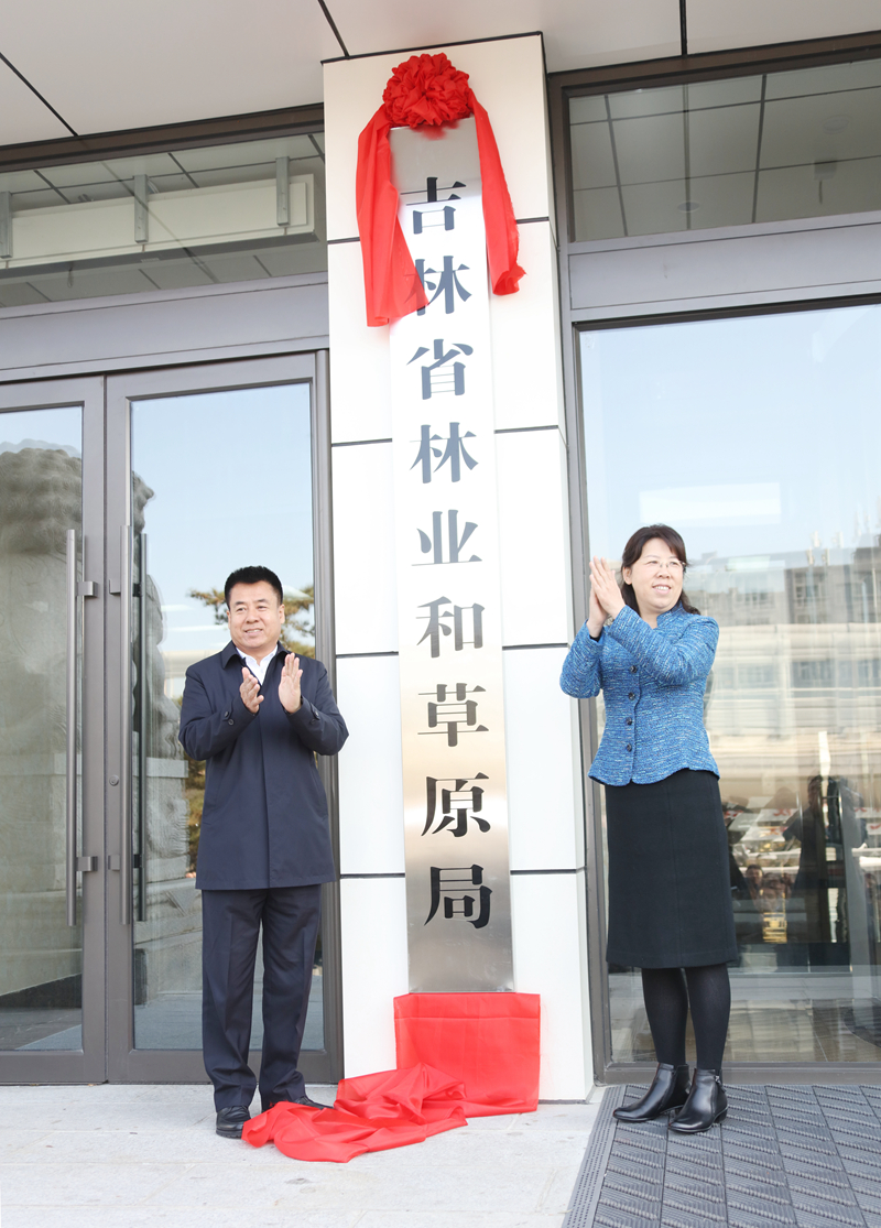 吉林省副省長李悅和吉林省林業(yè)和草原局新任局長金喜雙一起揭牌。