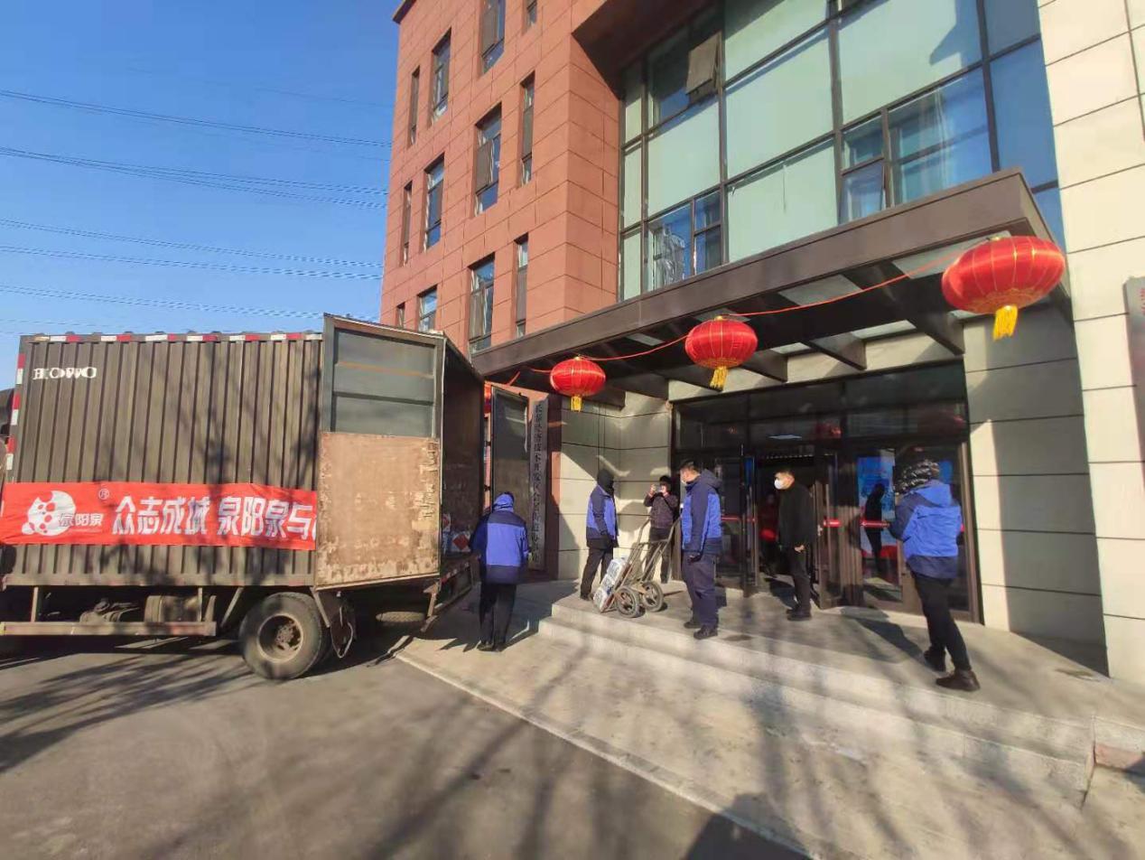 “泉陽泉,向前線英雄致敬”系列活動的第五站,便是各大街道、社區辦事處,陸續分批向奮戰在經開區管委會、會展街道、前進街道、衛星社區等多個單位的英雄們運送泉陽泉天然礦泉水。