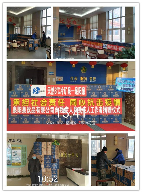 2021年伊始,新冠疫情再度襲來,為保障黑龍江省一線的殘疾人工作者及貧困殘疾人的抗疫物資使用及特殊群體的基本生活不受影響,同時,也為了能更好的幫助基層服務殘疾人的工作人員更好的工作,吉林森工集團泉陽泉飲品有限公司于2021年1月29日——2月5日,向黑龍江省殘疾人福利基金會各單位捐贈泉陽泉天然礦泉水,為抗擊疫情,貢獻自己的力量。