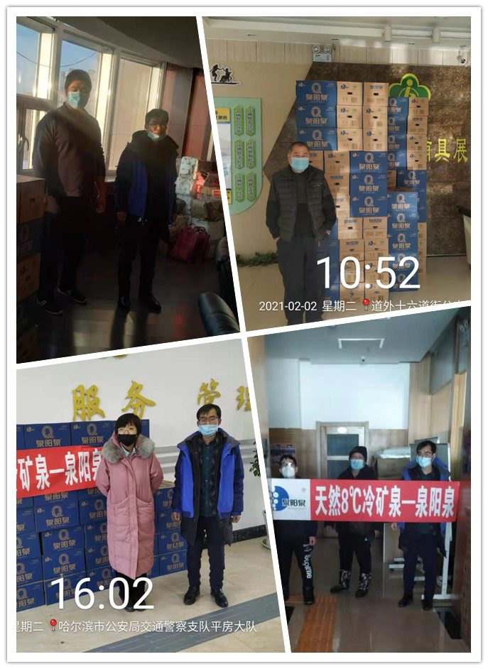 泉陽泉此次行動,主要囊括了包括哈爾濱市南方區殘疾人聯合會、哈爾濱香坊區殘疾人聯合會、哈爾濱道外區殘疾人聯合會、哈爾濱道里區殘疾人聯合會、哈爾濱松北區殘疾人聯合會、哈爾濱呼蘭區殘疾人聯合會、哈爾濱平房區殘疾人聯合會、哈爾濱市衛健委等多家殘疾人慈善機構,共計千余箱的泉陽泉天然礦泉水送到一線單位。