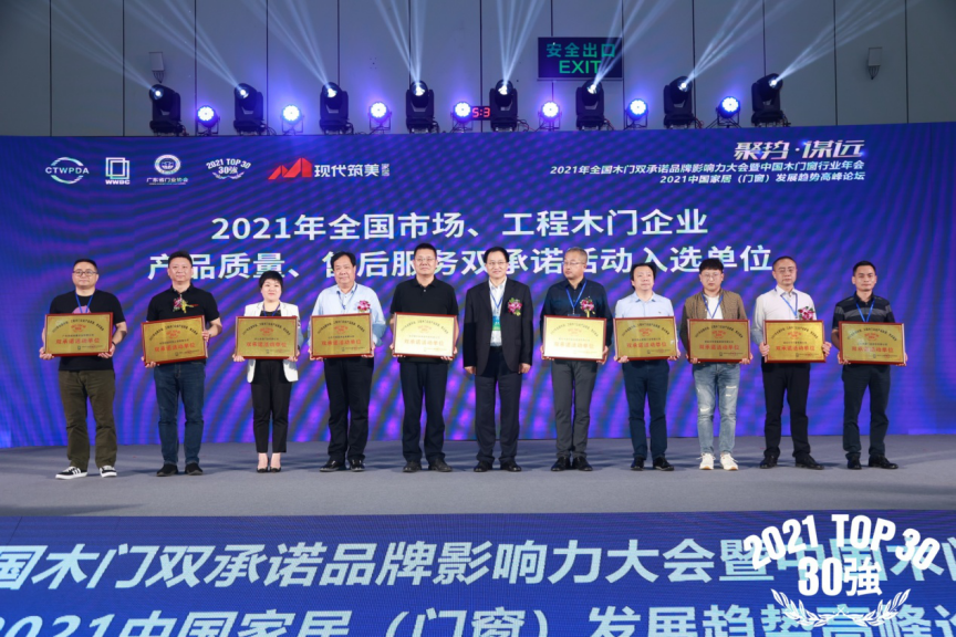 被譽為“木門30強”的“全國市場、工程木門企業產品質量、售后服務雙承諾活動”是國家九部委聯合批準的保留項目,是行業內極具標志性的品牌活動,由中國木材與木制品流通協會木門窗專業委員會負責牽頭組織,并從多個維度對入選品牌進行一系列嚴格的篩選與評判,最終評選出對引領行業規范發展,為行業品牌建設做出突出貢獻的單位。