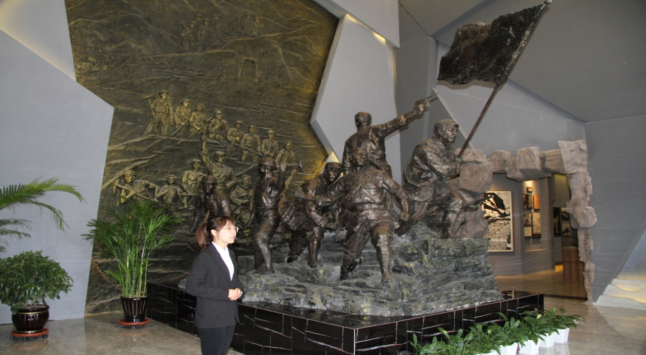 “在各位正前方是銅鑄塑像,塑像下方的基座,高約580毫米,象征著日本侵略者在石人礦區掠奪優質煤炭高達580多萬噸,而這其中包含著多少礦工的血淚和寶貴的生命……”紀念館講解員用低沉的語音帶領大家穿越歷史長河,重溫那段悲情歲月。