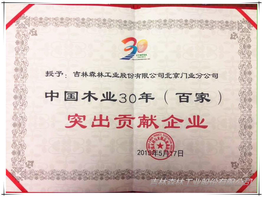 2015年5月17日,中國木材與木制品流通協(xié)會與中國木材與木制品流通協(xié)會各專業(yè)委員會聯(lián)合主辦的“2015中國木材與木制品流通行業(yè)年會暨中國木材與木制品流通協(xié)會成立30周年慶祝大會”在北京京西賓館第一會議室隆重召開。大會匯集了全國的門業(yè)協(xié)會、門業(yè)界的精英,全國各地行業(yè)企業(yè)家及多家新聞媒體代表,共同開啟中國木門行業(yè)發(fā)展新征程。霍爾茨門業(yè)受邀參加了此次年會,在表彰優(yōu)秀企業(yè)的環(huán)節(jié)中,霍爾茨再拔頭籌,喜獲“中國木業(yè)30年突出貢獻(xiàn)企業(yè)”榮譽(yù)稱號。